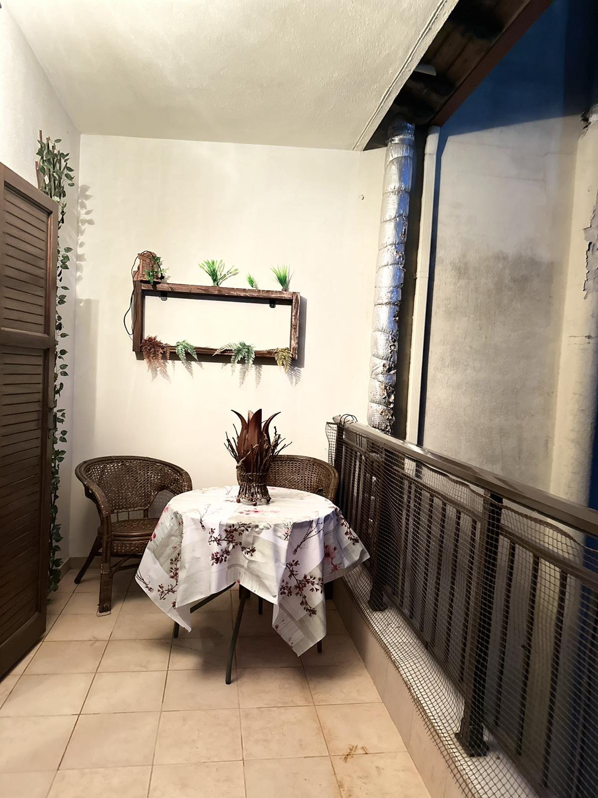 Студио бр.7 – прв кат. Располага со комплетно опремена кујна со голем фрижидер и мало решо, комплетно реновиран тоалет, сопствена тераса опремена со маса и столови и поглед одзади во дворот на вилата, клима, ТВ, Wi-Fi. Има француски кревет и еден стандарден кревет.