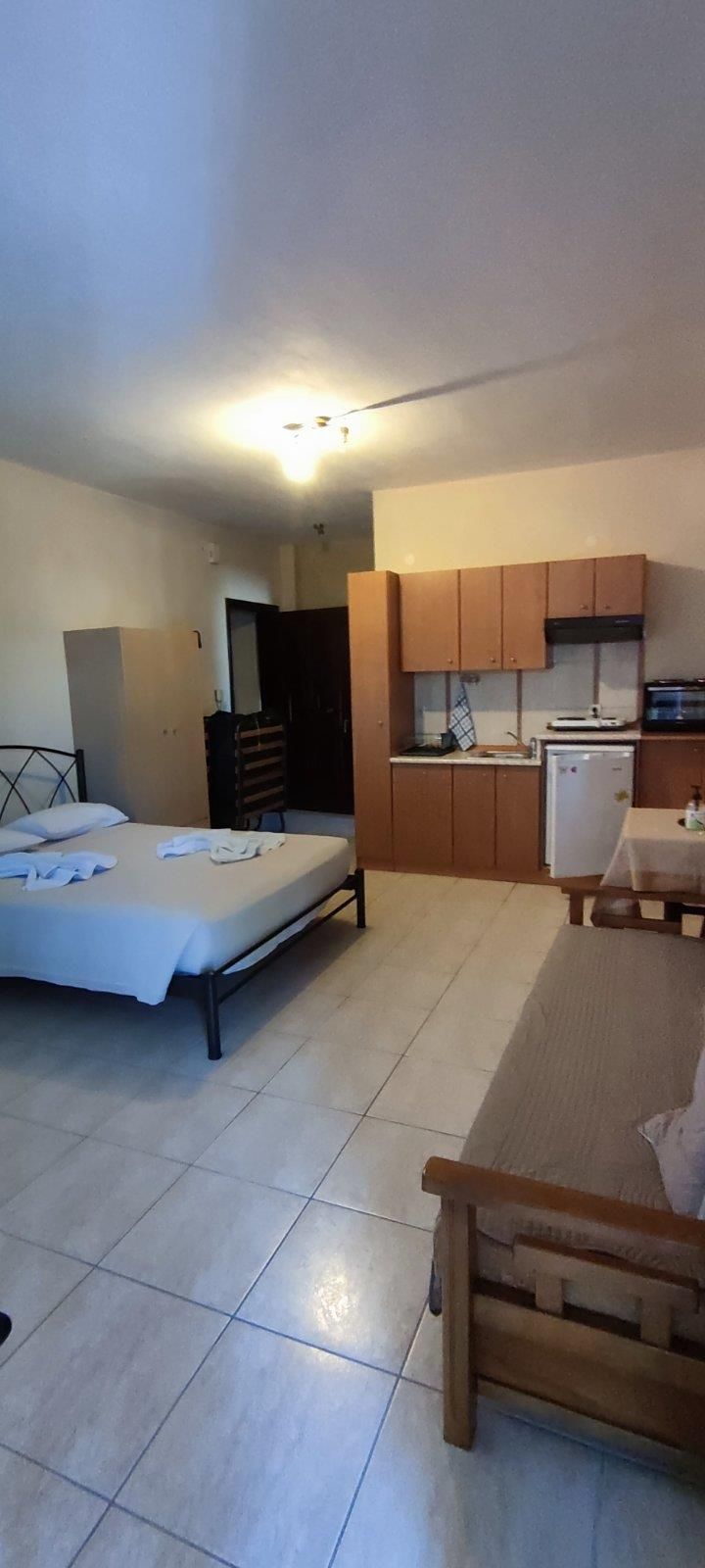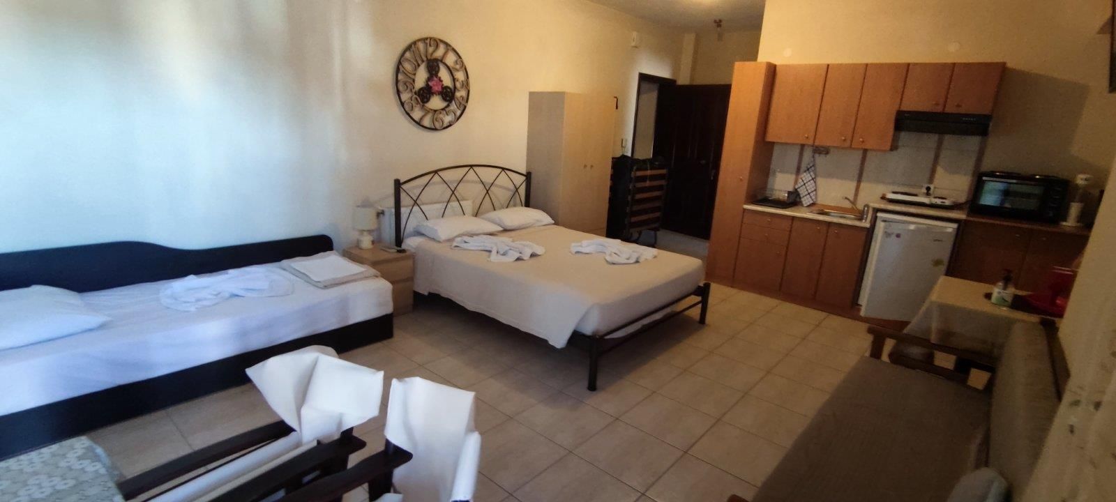 Студио број 4 (1/4) –  многу пространо студио со огромна тераса (страничен поглед море),  целосно опремена кујна, квалитетен мебел и сопствен тоалет. Располага со брачен кревет, 2 стандардни кревети и софа.