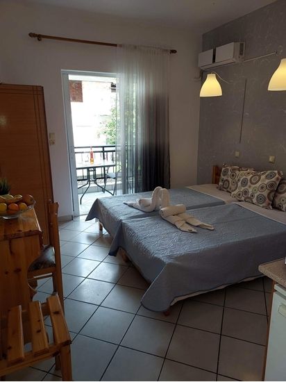 Вила Александра е лоцирана во Лименас во близина на шеталиштето со таверни и дуќани , на 300 м. оддалеченост до најблиската плажа и околу 700 м. од градската плажа. Вилата располага со 1/2 и 1/3 студија, опремени со кујна, ТВ, клима (со доплата),Wi – Fi и сопствена тераса. Вилата има паркинг во близина.