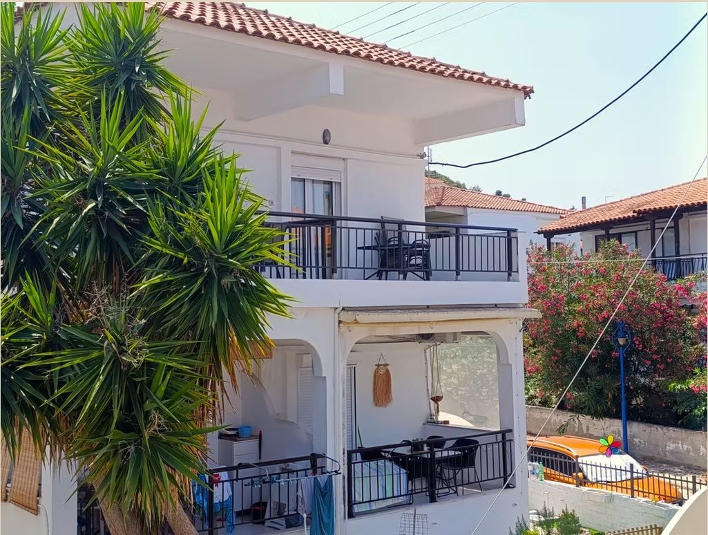 Апартманите “Скалос” се наоѓаат во центарот на Полихроно, Касандра, на прекрасниот и зелен Халкидики. Плажата е на само 300 метри од апартманот, а центарот на селото е на 100 метри. Скалос нуди 2 ново реновирани апартмани за 4 лица на 1-ви кат со по 2 големи балкони. Кујната е целосно опремена и има голем фрижидер. Исто така, има телевизор и клима уред. Пред вилата има многу простор за паркинг. Генерално, оваа област на Полихроно е многу мирна и ја препорачуваме за големи семејства.