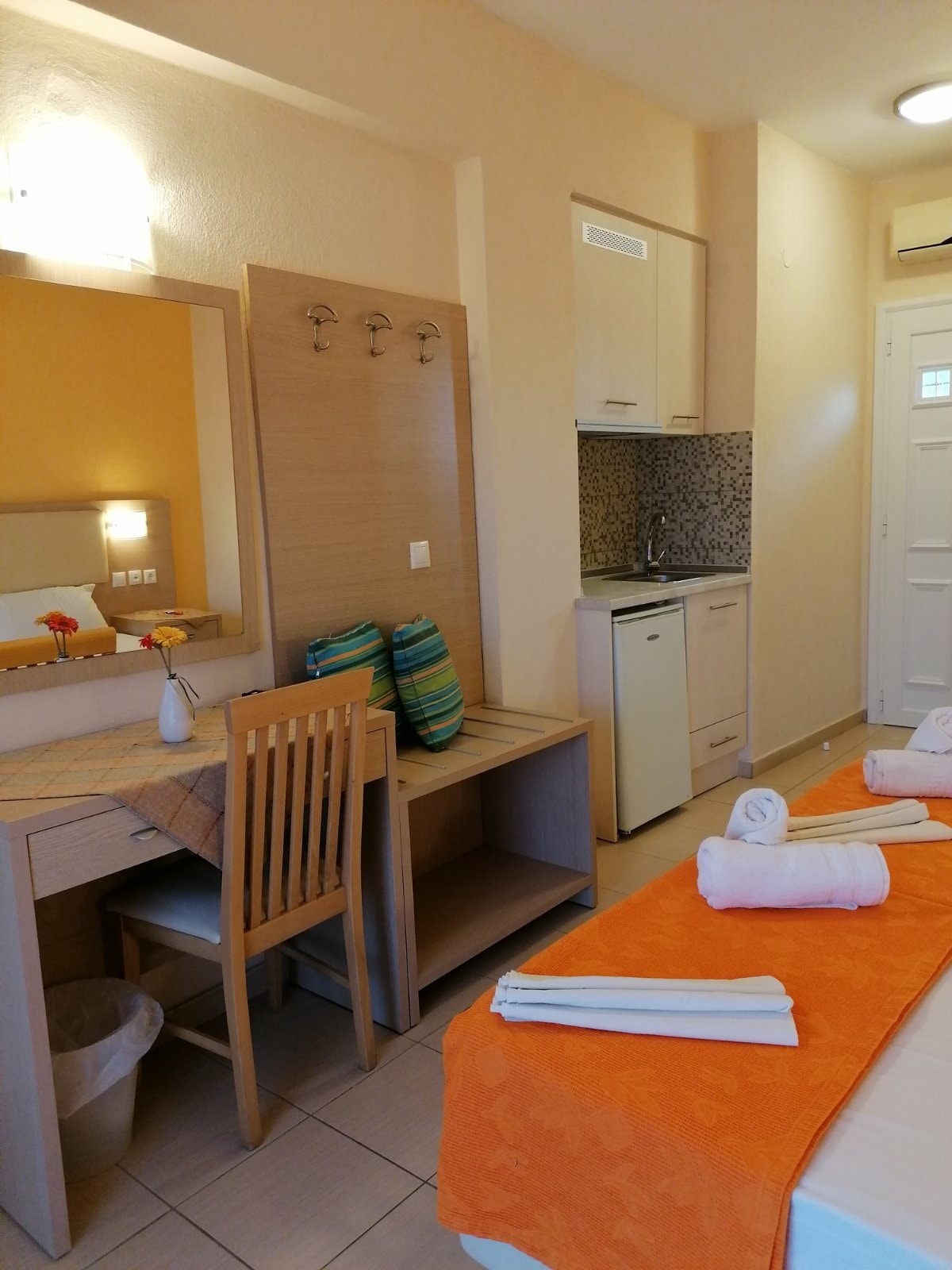 Апарт-студиата Декавил се наоѓаат на влезот во Геракини, оддалечен е околу 30 метри од најубавиот дел на песочната плажа. Вилата се состои од двокреветни, 1/2+1 со фотеља на расклопување (погодна за деца до 11,99 год или возрасен) и четворокреветно студио (на приземје) , останатите соби се лоцирани на приземје, први и втори кат, дел од нив гледаат странично на море. Исто така една двокреветна соба има можност за сместување на лице со посебни потреби, т.е има механизам за влез во соба преку тераса, доколку користи количка за движење. Собите се опремени со квалитетен мебел и новоизградени, комплетно опремени кујни, сопствен тоалет, ТВ, клима која се доплаќа во објектот (5 евра на ден) и интернет вклучен во цената. Во склоп на вилата има мал ресоран, каде се служи кафе и пијалоци, наутро може да се подготви појадок по пристапни цени (ладен и топол појадок).