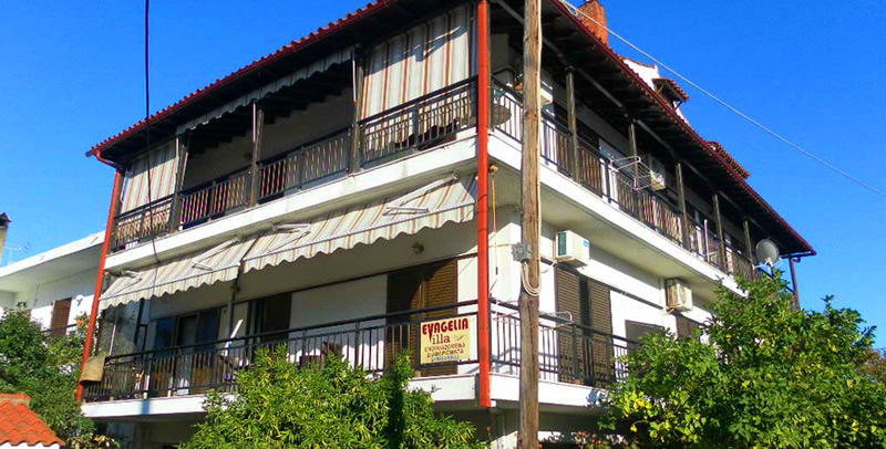 Вила Евангелија се наоѓа на одлична локација, на само 50 метри од прекрасната песочна плажа, во мирна уличка, а многу блиску до главната улица во Јерисос. Во куќата располагаме со5 наши апартмани на прв и втор кат, реновирани и средени за лето 2023. Користење на клима уредот и интернет (wi-fi) се вклучени во цената. Куќата располага со убаво среден сопствен двор со зеленило, цвеќиња, сопствена ѕидана скара и маси и столови во дворот. Има паркинг веднаш зад куќата.