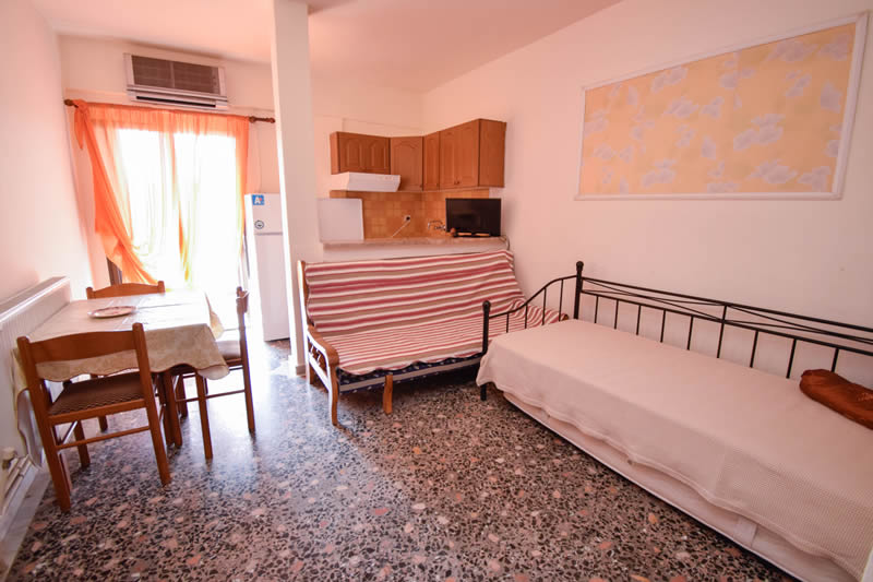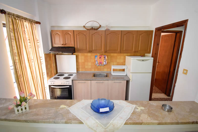 Апартман број 3 (1/3+1) – втор кат. Квалитетен апартман со одвоена спална соба со брачен кревет, а еден стандарден и еден кревет на извлекување во дневна заедно со целосно опремена одлична кујна. Пространа тераса со страничен поглед море. Од двете соби се излегува на терасата. Опремен е со квалитетен мебел и сопствен тоалет.