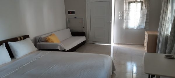 Располага со три поединечни кревети има простор за дополнителен кревет на расклопување(комотно е). Во склоп на собата има кујна опремена со кујнски инвентар,фрижидер,решо со две рингли, респиратор ,плакар за алишта.Во собата има ТВ и клима уред.Има сопствено купатило и WC.Студиото излегува на сопствено дворче со маса и столици.
