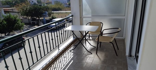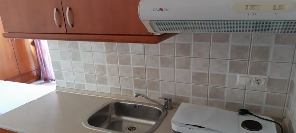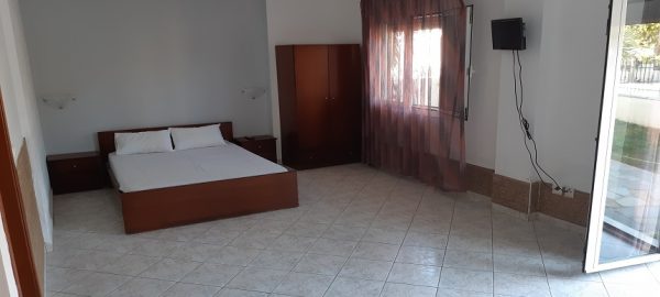 Во спалната има плакар за алишта, тв,клима уред и се излегува на тераса.Кујната е комплетно опремена со кујнски инвентар во која има фрижидер,решо со две рингли , респиратор.Има сопствено купатило и WC.Апартманот излегува на тераса со маса и столици.