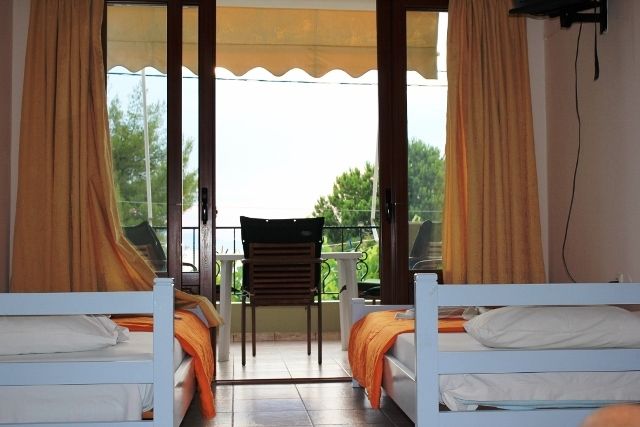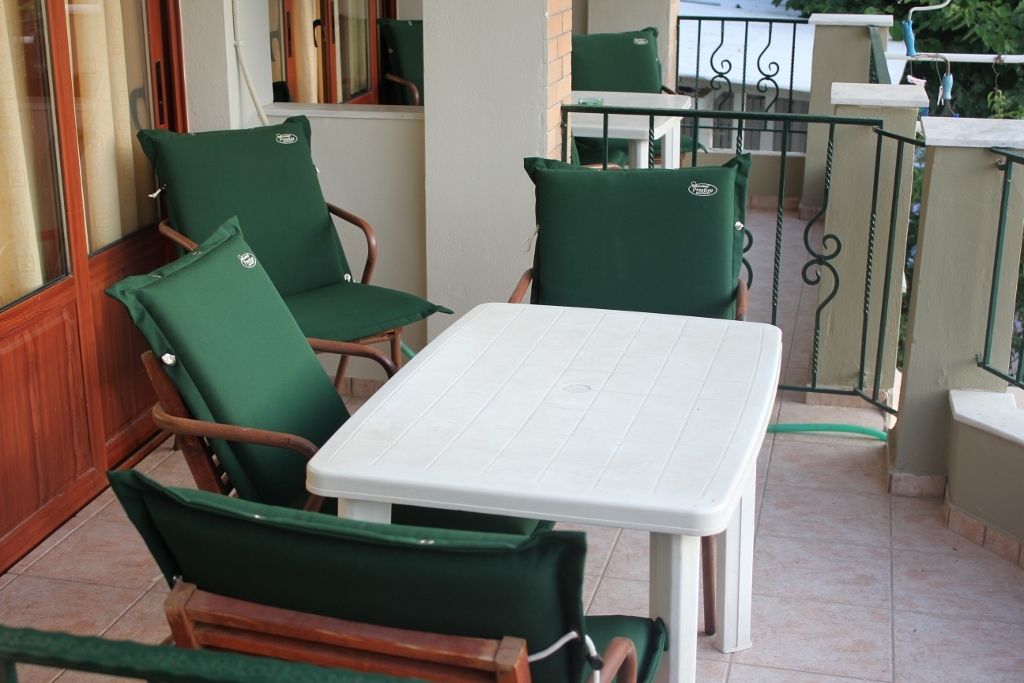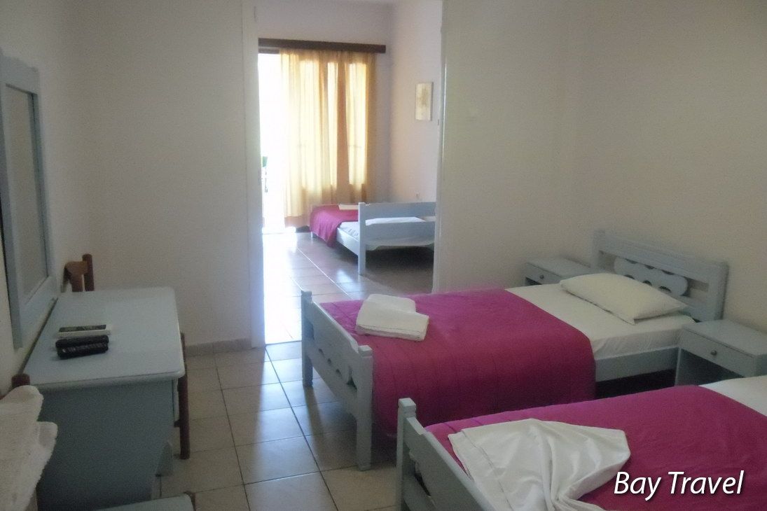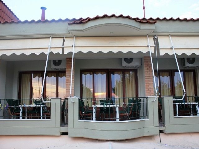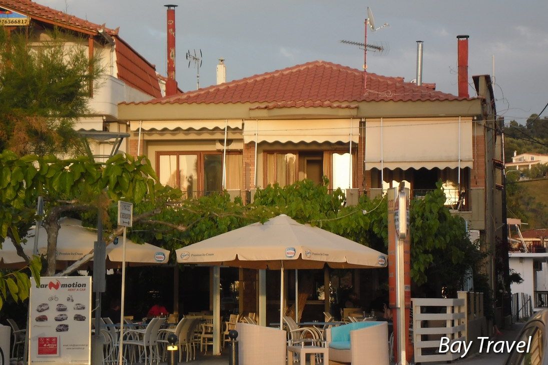 Вилата се наоѓа во центарот на Пефки во прва линија на сама плажа. Во приземјето на вилата се наоѓа Пефки травел нашата партнер агенција како и Керасиоти кафетеријата, а собите се на прв спрат. Вилата е комплетно реновирана во 2017 год. И располага со апартмани и студија. Апартманите се за 5 лица со комплетно опремена кујна и посебна спална, клима, тв, тераса, тоалет. Студијата за 4 и 3 лица се со поглед кон дворот и се со брачен кревет и еден или два единечни и се опремени со кујна, клима, тв, тераса, тоалет. Користењето на клима уредот е вклучено во цената.