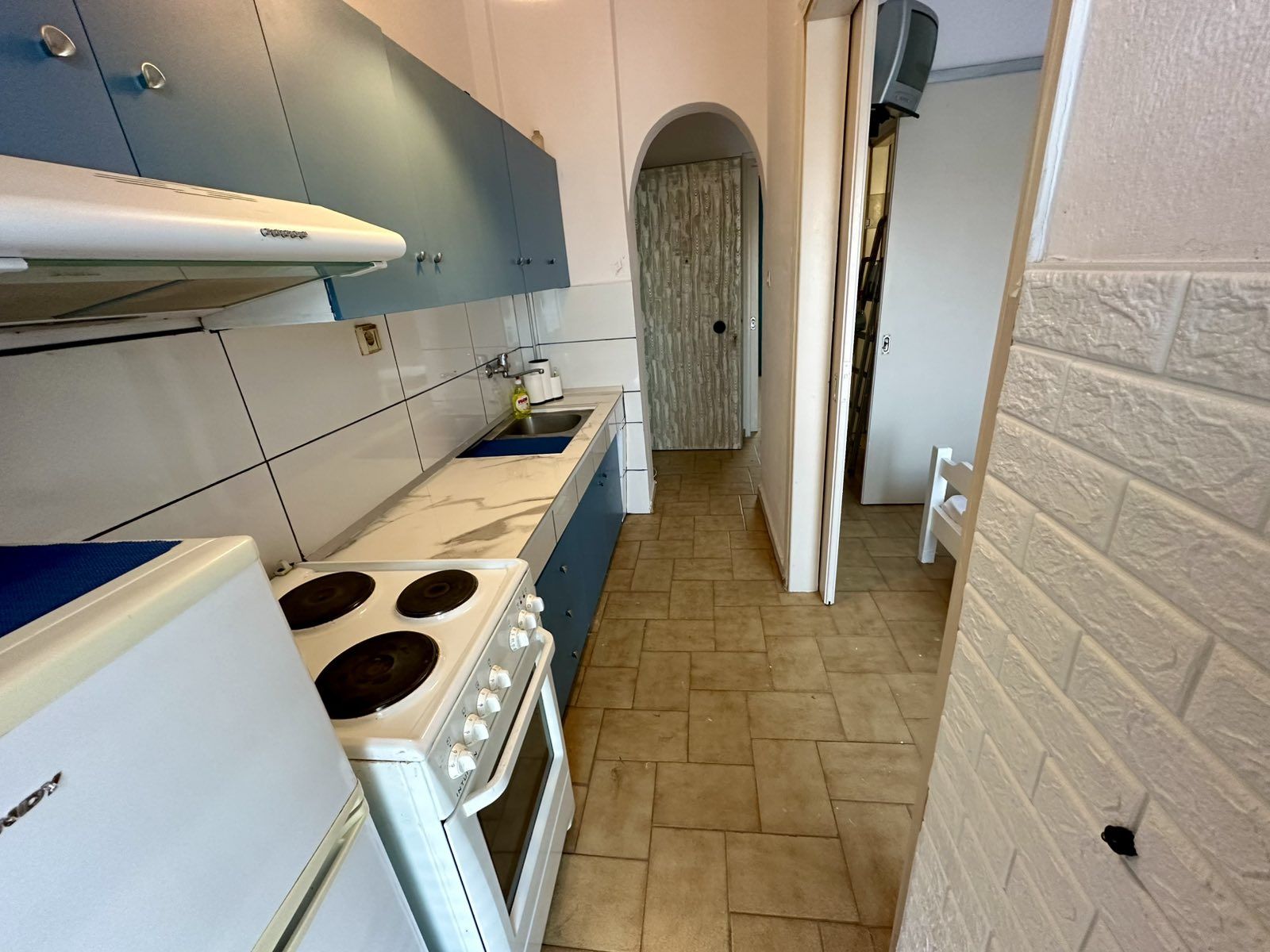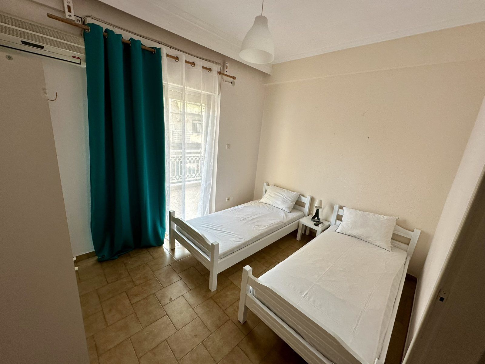 1/4 дуплекс апартман бр. 1 – високо приземје. Простран дуплекс апартман кој располага со три посебни простории: 2 одвоени спални соби, од кои во едната има брачен кревет, а во другата 2 стандардни единечни кревети и од двете спални соби се излегува на сопствена тераса. Одвоена опремена кујна со сите потребни елемнти (голем фрижидер, голем шпорет со рерна, кујнски прибор, електричен бокал за вода и сл.) и сопствен реновиран тоалет со туш. Опремен е со квалитетен реновиран мебел за лето 2026, 2 клима уреди, ТВ, Wi-Fi.