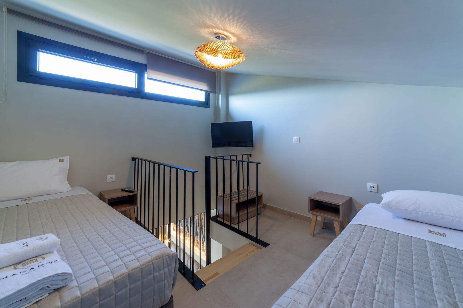 Deluxe Suites – идеални за семејства 4 лица; имаат брачен кревет на понискиот кат и два единечни во лофт-делот.