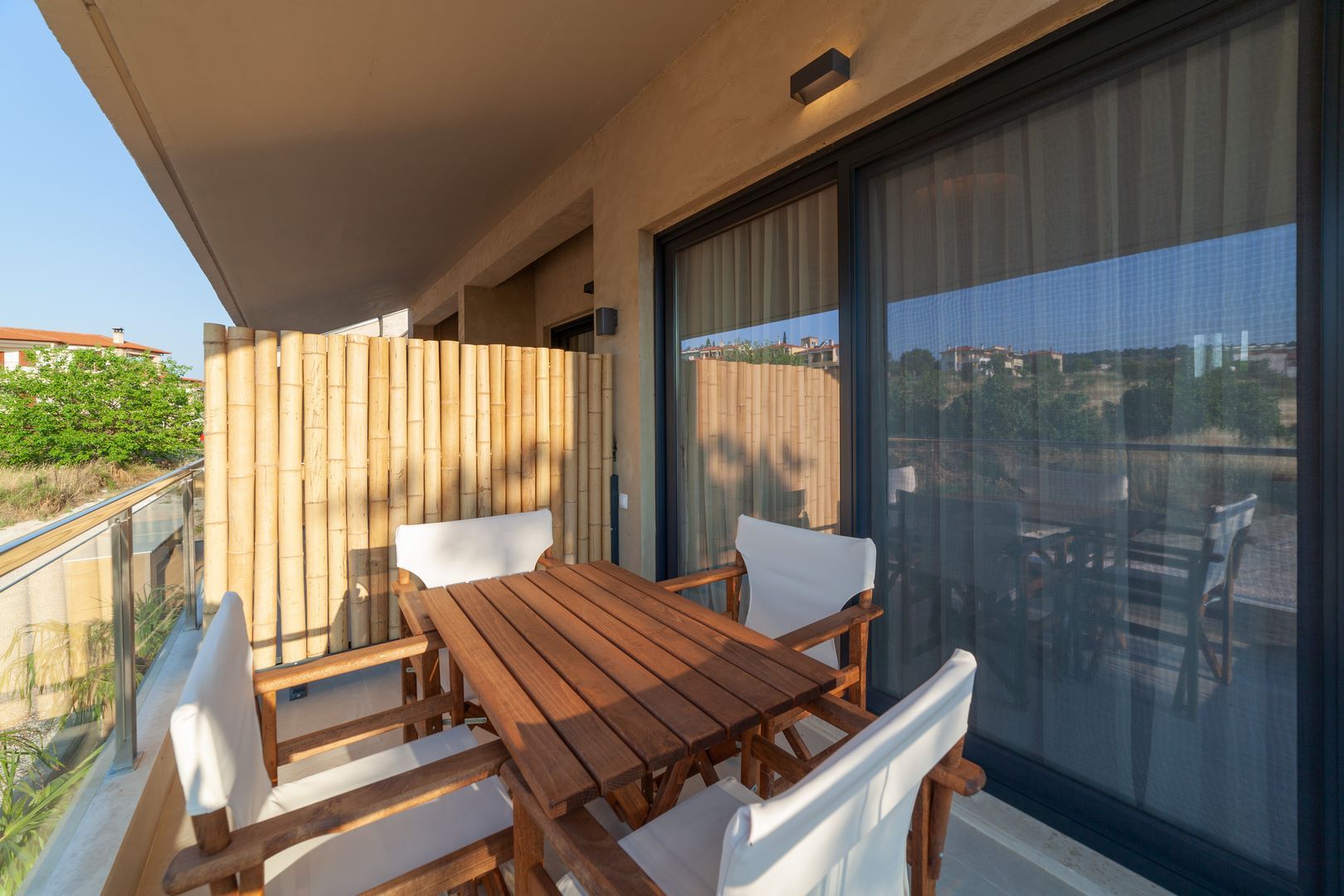 Објектот се наоѓа во централниот дел на Никити, на околу 6 минути пешачење до плажата со долга песочна обала и чисто море, идеална за пливање и релаксација. Локацијата нуди лесен пристап до кристално чистите плажи, ресторани, кафулиња и маркети, со можност за пешачење до стариот град на Никити.