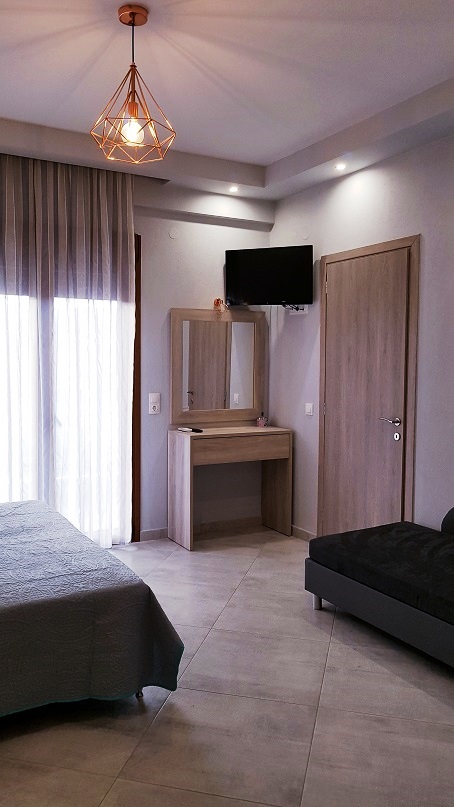 Вила “Maria Lux” се наоѓа во центарот на Ханиоти (веднаш до вила “Maria”) односно на почетокот на Плоштадот и нa oколу 150m oд плажа. Вилата е ново изградена во Октомври 2018 година. Располага со: комфортни струдија за три лица и апартмани со една спална соба за пет лица со големи тераси. Опис на собите: 1/3 студио на ниско приземје (сутерен) 1/3 студио на високо приземје и 3+2 апартмани со една спална на I и II кат. Сите се комфортни и комплетно опремени со нов мебел со: кујна (со комплетен прибор за онолку лица према број на легла + аспиратор, фрижидер…), тоалет, крпи за лице и тело, клима (БЕСПЛАТНА), ТВ, како и бесплатен интернет, гардеробер, сушара, широки балкони, масичка со столчиња со поглед напред на улицата, Плоштадот. Ви посакуваме пријатен престој.