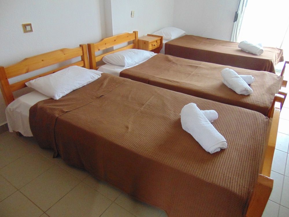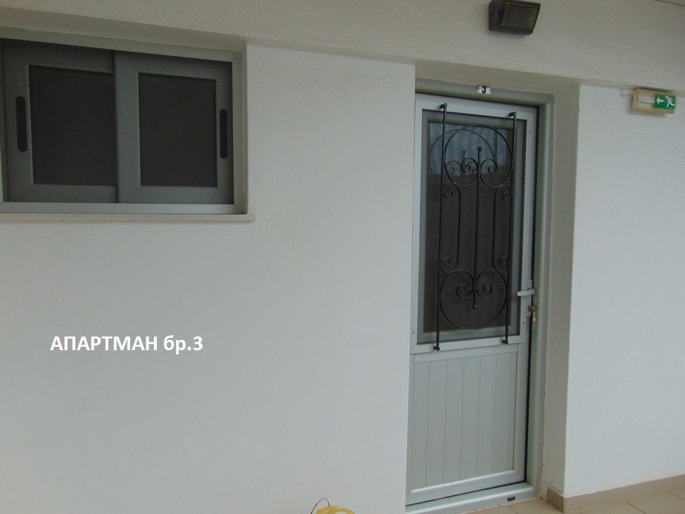 Трокреветен апартман со една посебна спална соба одделена со врата од кујната. Се наоѓа на вториот спрат во вилата. Во просторот пред спалната соба на самиот влез во апартманот се поставени елементите од кујната: мини електрично решо, аспиратор, голем фрижидер со одделна комора, садови за готвење и јадење. Од овој простор се влегува во купатилото. Во спалната соба има три единечни кревети со нормални димензии, гардеробер, телевизор и клима уред чие користење е вклучено во цената. Од собата се излегува на пространа тераса која е опремена со пластична маса и столчиња и има директен поглед на море. Собата е заштитена со ролетни и комарници.