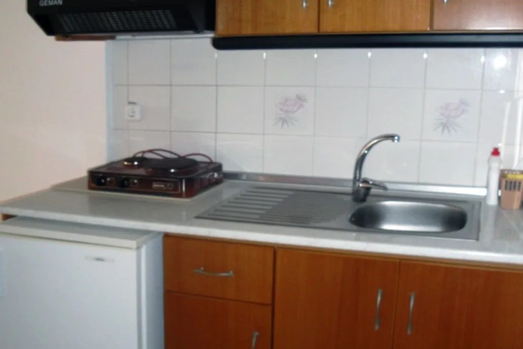 Сите студија се трокреветни со еден брачен кревет и еден единечен. Студијата се наоѓаат на втор кат и секое студио е оремено со ТВ, интернет – WI-FI, сопствена кујна,тоалет, тераса, клима (5 еур доплата на ден – се плаќа во вилата).