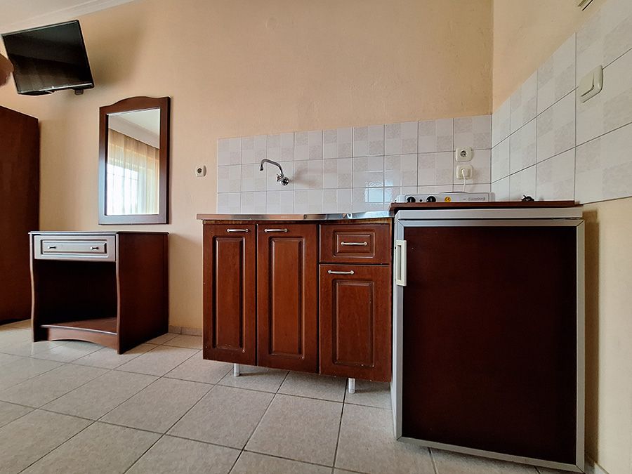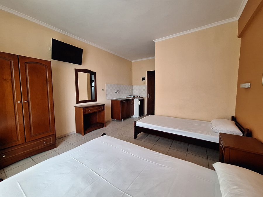 Сите студија се опремени со: Сопствен тоалет, тераса, мини-кујна со прибор за готвење и јадење, ТВ, Wi-Fi, клима уред (5€ на ден – се плаќа на лице место).
