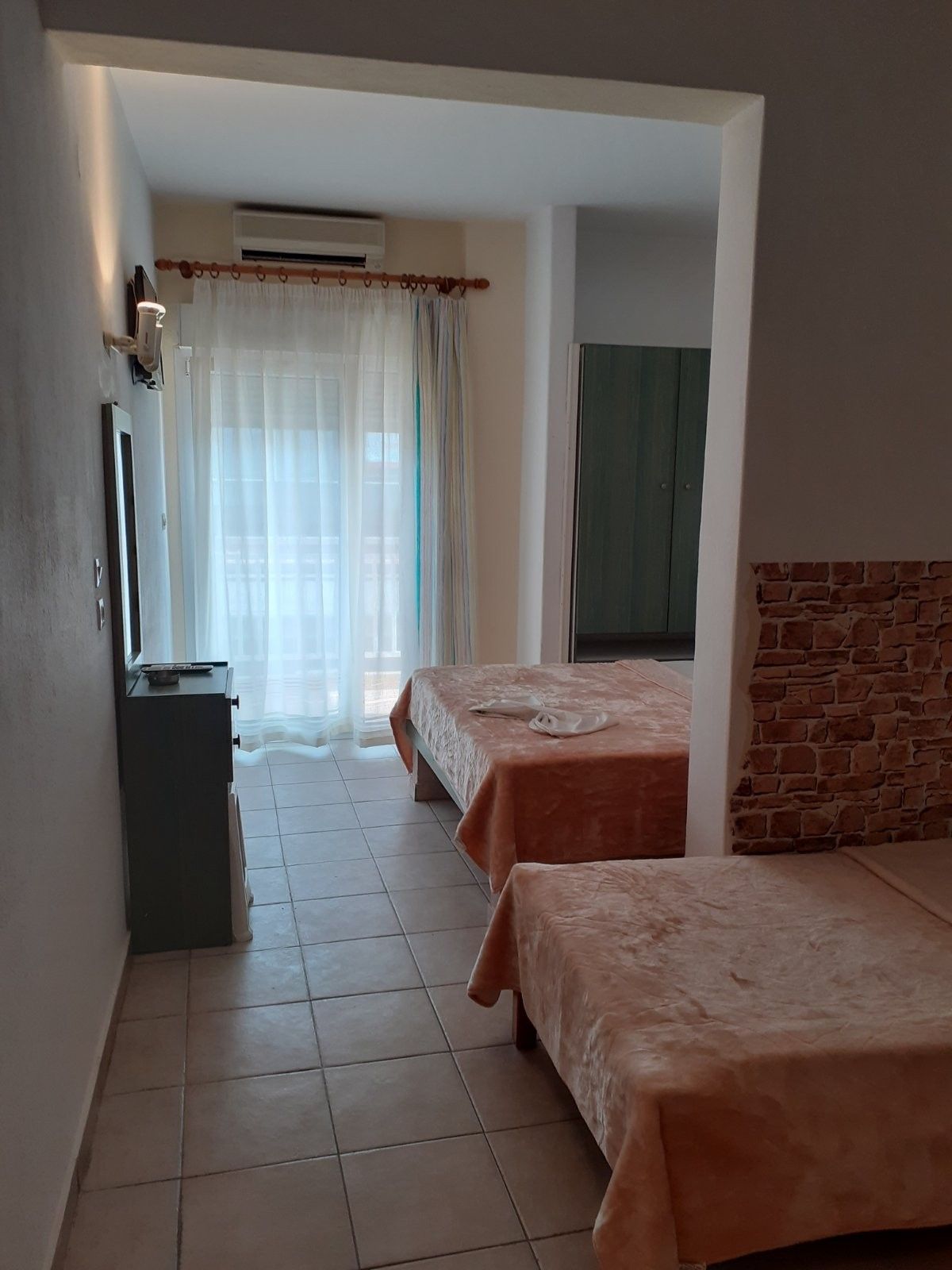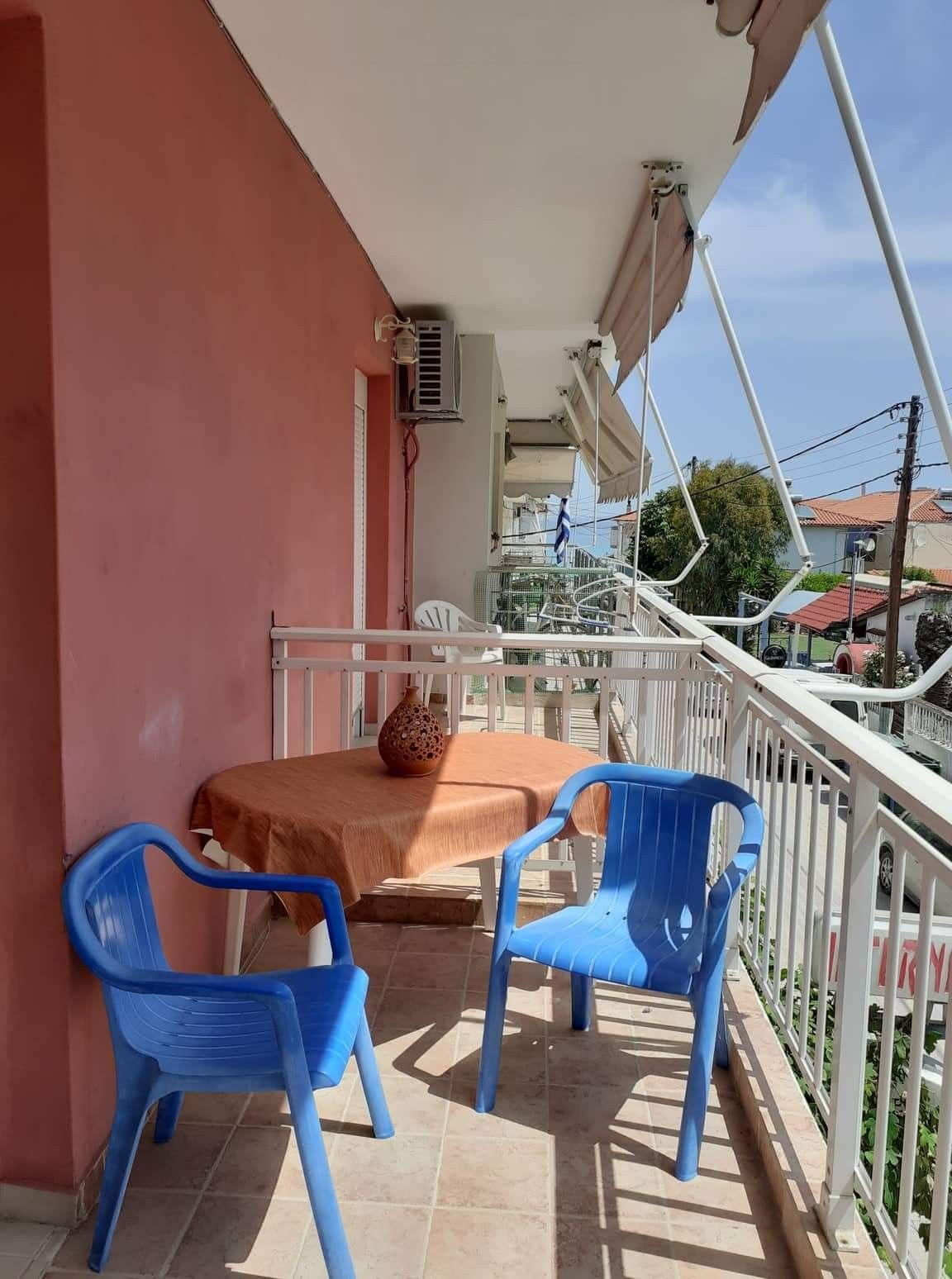 - Студио 5 – 1/2 +1 брачен кревет по грчки стандард и 1 единечен кревет фрижидер, опремена кујна, шпорет БЕЗ рерна, основни садови за соодветниот број на лица , ТВ, интернет, купатило, клима, тераса со страничен поглед на море.