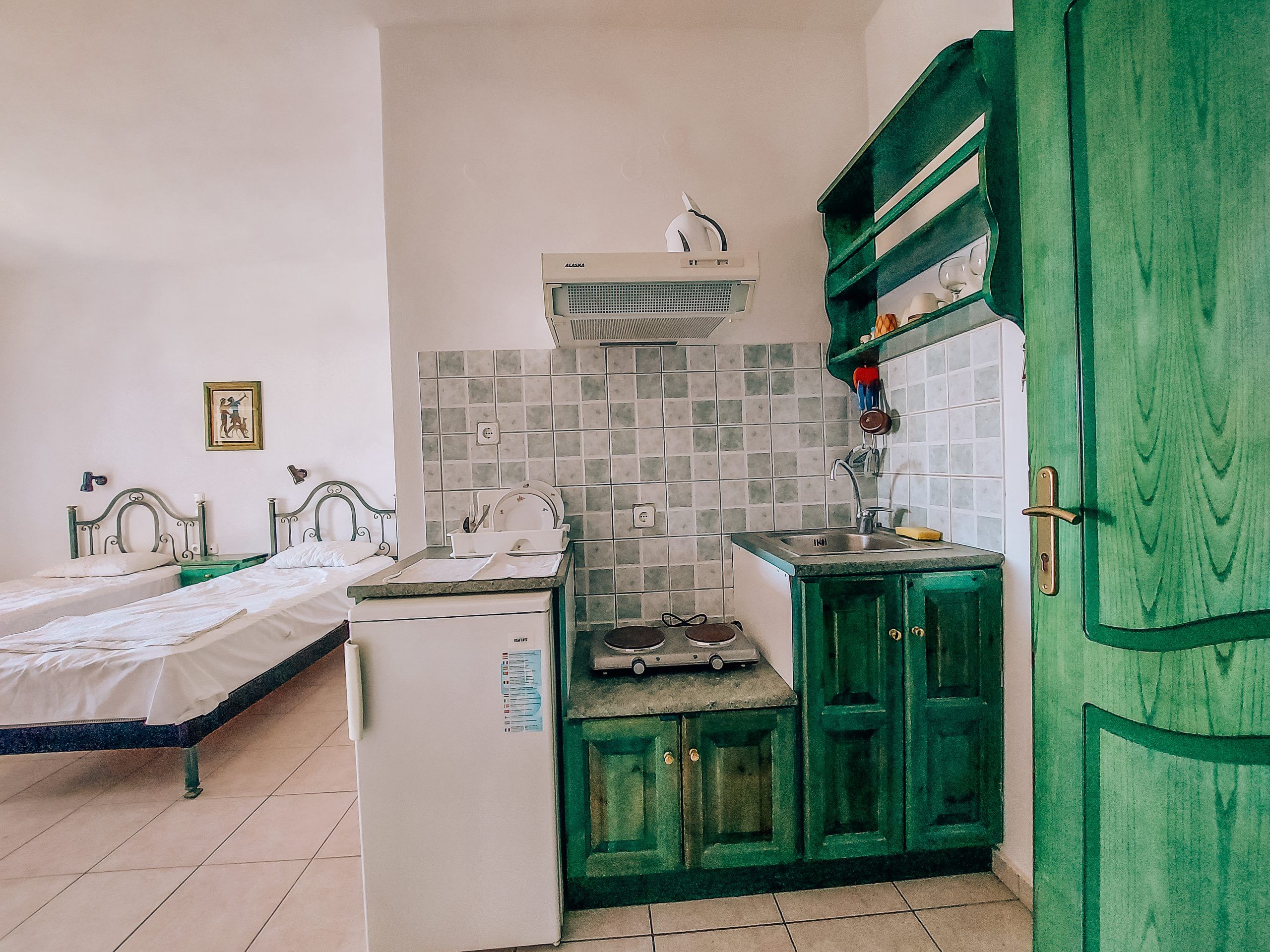- Кујните во сите студиа се опремени со најосновен прибор за подготовка на лесни јадења.