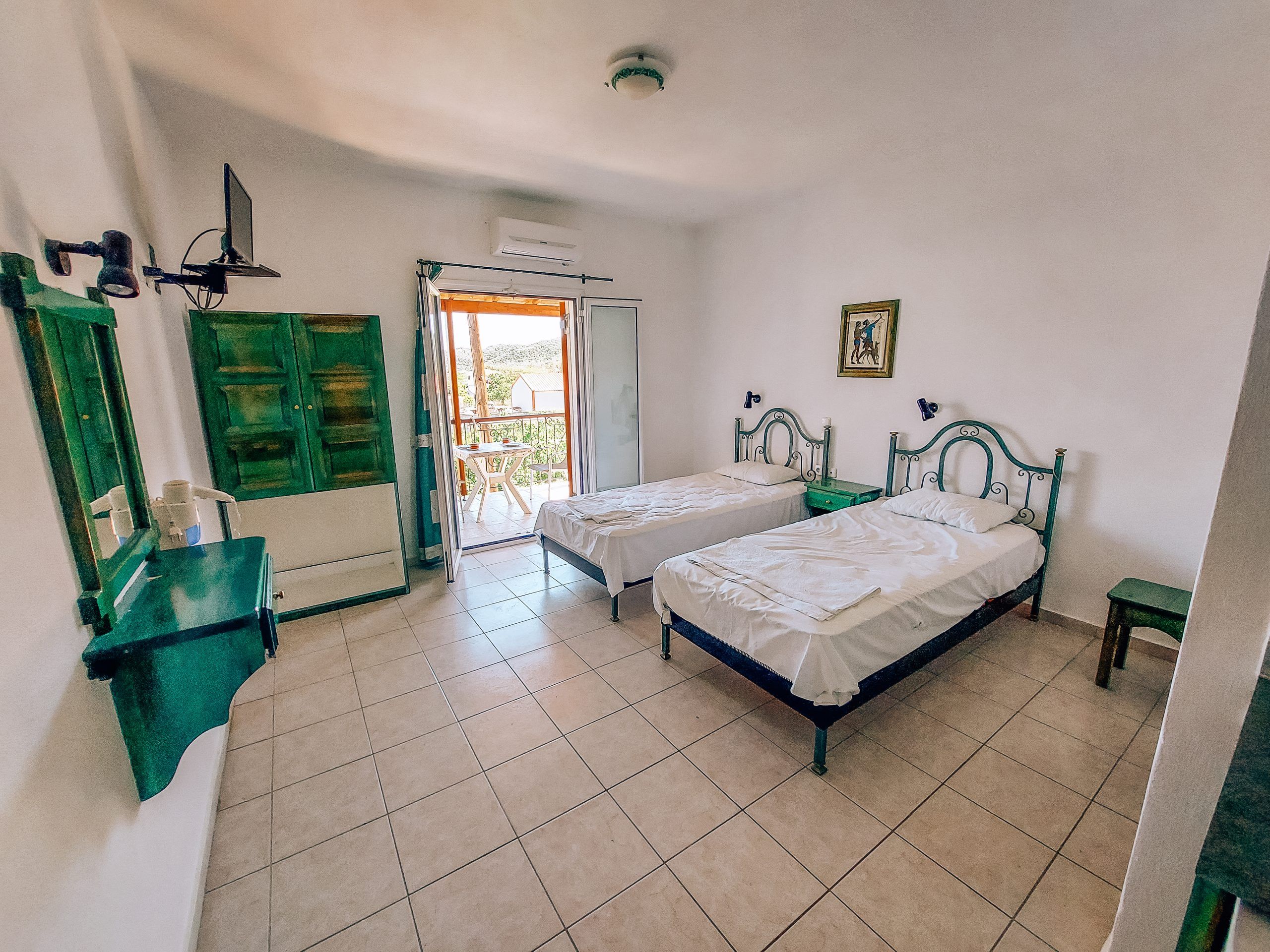 Вилата располага со двокреветни и трокреветни студија на првиот спрат. Од дел од студијата може да се набљудува морето, а останатите нудат погед кон пејсажниот остров. Студијата се опремени со мини кујна за подготовка на лесни оброци, фрижидер, прибор според бројот на гости, ТВ, плакар, тераси со столчиња и маса и Wi-Fi, и тоалет.