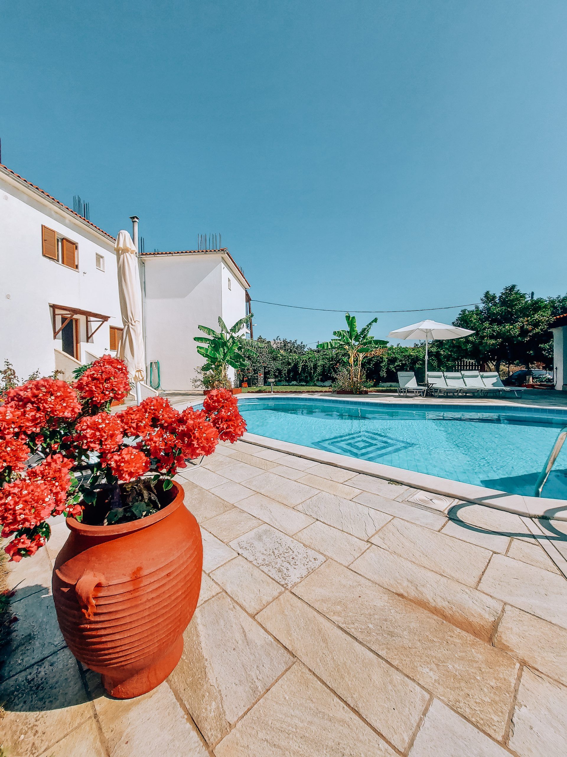 Вилата е на една минута пешачење од море. Првата плажа е на 3 минути пешачење, но таа плажа е мала и не е организирана. За да се посетат најубавите плажи на островот, се користи јавниот превоз.