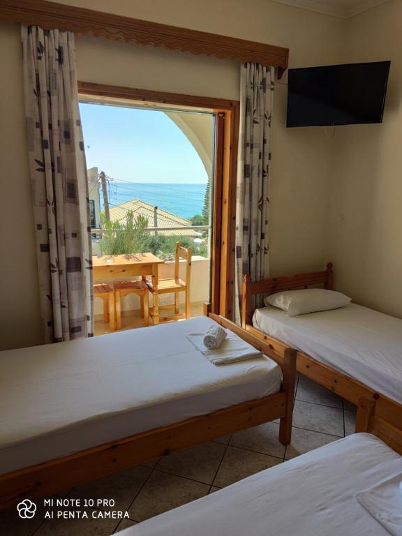 Вила „Vrachos Beach Apartments“ се наоѓа во централниот дел, на 50 метри од плажа. Вилата располага со трикреветни апартмани, лоцирани на високо приземје, со комплетно опремена кујна, балкон, сопствен тоалет, WIFI, ТВ, клима (се доплаќа 10 евра на ден), пешкири и постелнина се менува еднаш до двапати во текот на престојот (во зависност од тоа дали се 7 или 9 ноќевања).